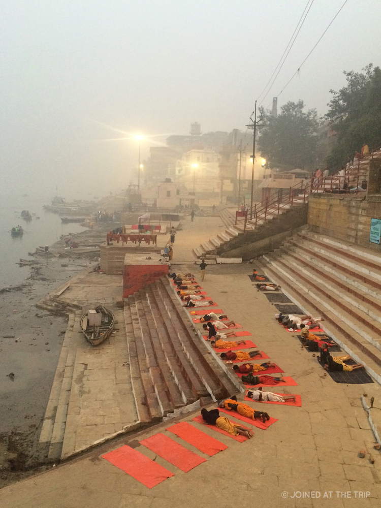 In the morning we revisited the ghats and saw a typical day at dawn on the river. Children practicing yoga, pilgrims bathing in the water, meditating, praying and cremations taking place all day long. Female family members are not allowed to attend the cremations, apparently they are too emotional and they cry all the time (our guide actually said this!), so they stay at home while the men perform the ceremonies.
